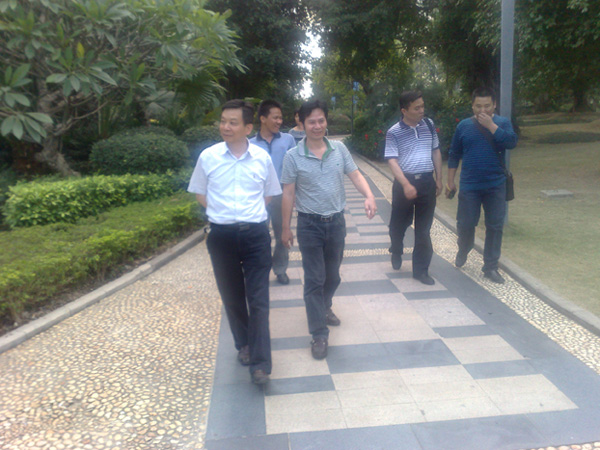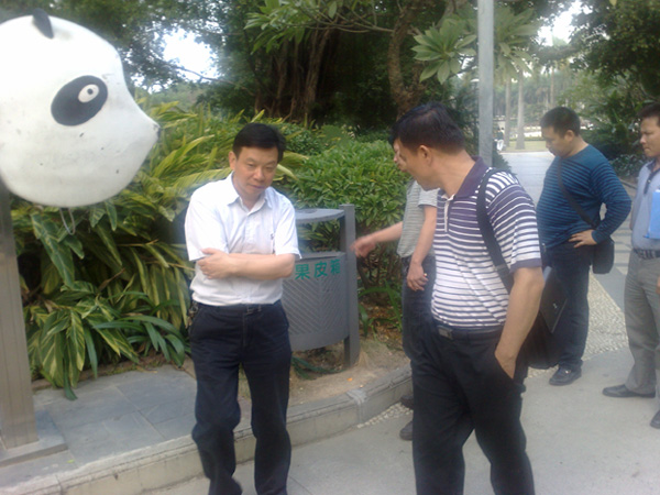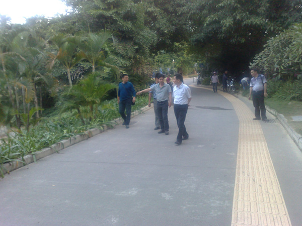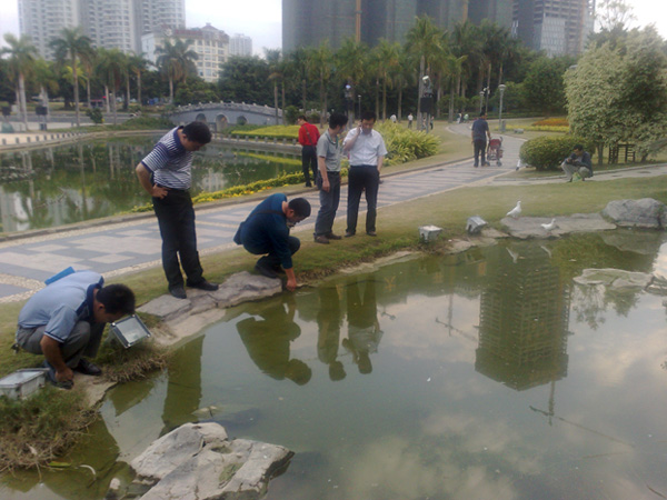 2011年11月28日,南宁市爱卫办常务副主任卢世伟一行到我市创卫示范点及窗口单位进行病媒防制专项检查,图为卢主任一行检查康净公司负责的示范点南宁市南湖南广场病媒防治现场。